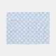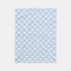 Wintry fleece blanket with a pleasing pattern of light blue snowflakes on a white background.