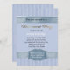Beautifully detailed Retirement party invitations in pastel blue stripe pattern. Blue ribbon accents. This elegant design is perfect for a man or woman. Name, Date, Location and RSVP Text is ready for you to customize with your information.