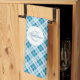 Light Blue tartan Christmas pattern Monogram Kitchen Towel