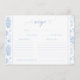 Light Blue Toile Floral Bridal Shower Recipe Card