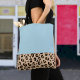 Its spacious design provides ample room to store all your essentials, such as books, a laptop, and personal items. The light blue color is fresh and versatile, while the leopard trim adds a bold and original touch, making it a true statement piece.