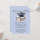 Celebrate your graduate's incredible academic achievements with this elegant and scholarly graduation party invitation. Designed with intention for the proud parent or graduating student, this invitation features a beautiful watercolor illustration of a classic book stack, a neatly rolled diploma, and a traditional black mortarboard cap with a gold tassel. Set against a soft, light periwinkle blue background and paired with sophisticated script typography, this design perfectly balances a timeless, vintage aesthetic with modern elegance. Ideal for high school, college, or university graduation celebrations. By simply utilizing the intuitive text templates, you can effortlessly update the graduate's name, alma mater, class year, and all your special event details to create a flawless, ready-to-print masterpiece that your guests will love.