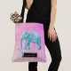 Light Blue Watercolor Elephant on Pink Background Tote Bag