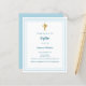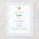 A white background, decorated with a light blue frame, and a golden cross Personalize and add the name and details.