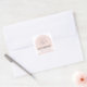 Light blush pink and white modern minimalist business product labels with arch shape and custom logo. The clean layout and modern typography make these stickers perfect for professionals who love a sleek, contemporary look.