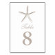 Light Brown Starfish Beach Wedding Table Number Table Cards.