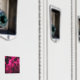 A photographic design of used light bulbs with magenta background lighting.