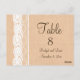 This is the coordinating table number postcard for the Light Burlap & Vintage Lace wedding line. It is also available in ivory. Note: lace is a photo illustration.