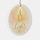 A softly glowing watercolor candle with the word Light in golden calligraphy. Symbolizing hope and divine guidance, this elegant ornament adds warmth and meaning to any tree.