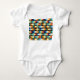 This baby bodysuit has a geometric design of light-colored diamonds overlapping each other on a field of black.
