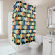 This shower curtain has a geometric design of light-colored diamonds overlapping each other on a field of black.
