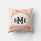 Light Coral Peach Reverse Greek Key Bow Monogram Throw Pillow