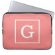 Light Coral White Framed Initial Monogram Laptop Sleeve