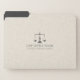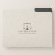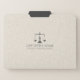 Beautiful light cream linen texture burlap print featuring black justice logo customizable text with a black linen texture on the inside of the folder.
