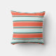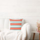 This throw pillow design features a light cyan, red, and teal colored striped pattern.