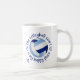 This cute volleyball themed coffee mug features the typographic phrase, "The volleyball court is my happy place" and two heart outlines in blue encircling the realistic image of a light blue, dark blue and white volleyball - customize with monogram - by katz_d_zynes