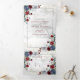 Light Dusty Blue Burgundy Floral Wedding Tri-Fold Invitation