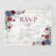Light Dusty Blue Burgundy Gold Wedding RSVP Invitation Postcard