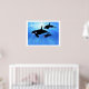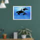 Two female and one male killer whales hunt together in the beautiful clear ocean.