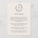 A tasteful and classic choice in wedding details enclosure cards, this design in neutral light ecru beige conveys a simple elegance in its text layout and classic style. A simple open laurel wreath of sketched leaves surrounds the monogram initial of the bride and groom. The elegant yet simple text template has a sample text template to personalize with your desired information. You can include hotel accommodations available to your guests, your wedding website, special events, transportation info or whatever details you wish to provide your guests. It is available in a variety of popular colors (shown here in the deep sage green and ecru) as well as many different paper types and weights.