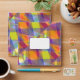 Bright and colorful abstract background of triangles in a rainbow palette, showcasing a digital geometric art style.