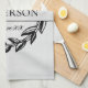 Personalize this black and light gray leaf kitchen towel with your last name and the date of your wedding. Great idea for wedding gift or gift for any couple
