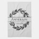 Light Gray and Black Leaf Family Name Wedding Date Kitchen Towel