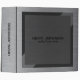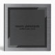 Light gray metallic texture print with black accent and modern geometric frame on front and back. Black line on spine is only good for this size.