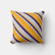 This throw pillow design features a light gray, orange, sienna, and blue colored stripes pattern.