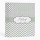 An elegant recipe mini binder with a modern light gray and white polka dot and chevron pattern with a faux ribbon design. Makes a pretty, useful and thoughtful gift for people who love to cook.