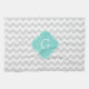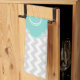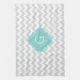 Light Gray White Chevron Aqua Quatrefoil Monogram Towel