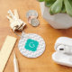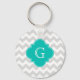 Light Gray White Chevron Teal Quatrefoil Monogram Keychain