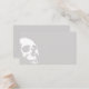 Light gray Halloween or goth wedding place card with a white skull and a blank background to write guest name and table by hand. Blank goth wedding escort card in light gray and white.
