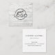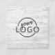 Square, professional business cards or personal profile cards with a with a printed, light gray wood grain background on the front and a logo template for uploading your custom logo. On the back are template fields for name, title/company name/specialty and contact information. A minimal and classy design.