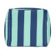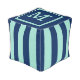 Light Green and Navy Blue Stripes with Monogram Pouf