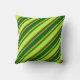 This throw pillow design features stripes colored light green, dark green, and brown.