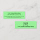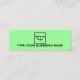 Light green mini business card for your customers or clients to easily find your business address and contact information. The front side contains plain text information and the back side contains your business name and logo. Customize it by typing your business name, your name, your title, address, phone number, e-mail and uploading your business logo. Mini business card that you can also use to build brand name awareness. Please check the appearance of the front and back sides after typing texts and uploading logo. If the appearance is pleasing to you, you can place your order now. If you need to resize or reposition the texts and logo, please adjust in the design tool. You can also change the background color, font color and font style in the design tool.