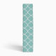 A white outlined quatrefoil pattern is on a light, almost sea foam green background. The center has a customizable light, powder pink monogram frame that compliments the green color prettily.