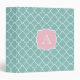 Light Green Quatrefoil Pink Monogram Binder