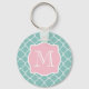 Light Green Quatrefoil Pink Monogram Keychain