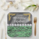 An elegant Surprise Birthday Paper Plate, with gold and silver. A light green glitter Zebra print decorated with shiny diamonds.