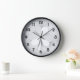 This wall clock features a light grey clover made of paper leaves in the shape of hearts on a grungy grey background.