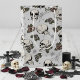 Hand-drawn in black ink, this gift bag features a beautiful pattern of skulls, roses and spiderwebs in cream and blush tones, all against an elegant light grey background.