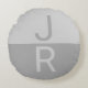 Light Grey & Grey Modern Initials Monogram Round Pillow
