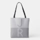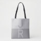 Light Grey & Grey Modern Initials Monogram Tote Bag