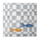 Light Grey Watercolour Checks Fish Ceramic Tile