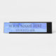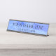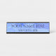 A personalized desk name plate with space for a name and title on a light to medium blue background. It's a simple look, that is attractive. Great for home office, or professional, bosses, or employees.