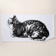 An airy drawing of a loafed tabby brings calm energy to travel days. The high-contrast silhouette stays readable on sand or deck. Gift it in winter and dream of summer.