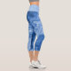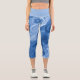 Light Medium Dark Blue Marble Swirls Art Pattern Capri Leggings