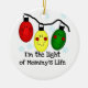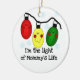 A set of three holiday lights on a string with eyes and smiles and text that reads "I'm the light of Mommy's Life" on customizable keepsake ornaments.